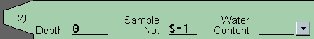 For the last example, the LOGDRAFT data entry screen included prompts for both the blow counts and the N-value result because both the intermediate data (the blow counts) and the calculated results were of interest; in contrast, the moisture content calculation uses data which would not be of interest outside of the equation (e.g., there is no reason to have the moisture content test's wet and dry soil weights cluttering up the data entry screen). These types of equations may be set up so that the data entry fields required for the calculation are hidden. For example, on the data entry screen below, the Water content field has a button on its right: