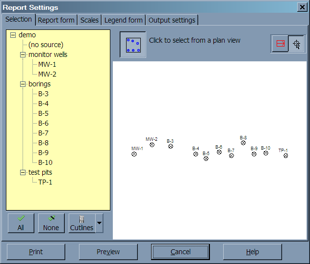 When plotting profiles, the arrow drawn inside the box determines the order of the borings plotted on the profile.