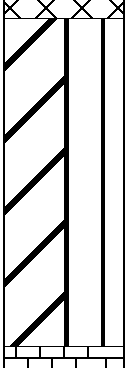 In situations where two dissimilar materials were encountered at the same depth, LOGDRAFT can split the stratigraphy column in half and show one material's patterns on the left half of the column and the second material's patterns on the right half. A sample split stratigraphy is shown the image below: